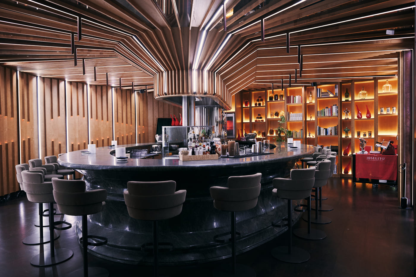 El Escenario: Un entorno versátil y sofisticado donde el showcooking y la alta gastronomía se encuentran. Ya sea para una pausa gourmet o como inicio de una velada inolvidable, LA’Barra ofrece el ambiente más vibrante de Madrid.